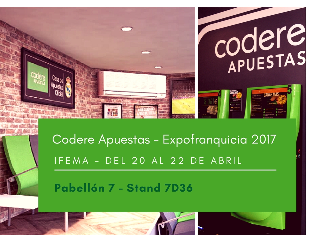 Codere Apuestas, Casa de Apuestas Oficial del Real Madrid y pionera en las apuestas deportivas en España desde 2008, acude a Expofranquicia 2017, que se celebra en Madrid del 20 al 22 de abril.