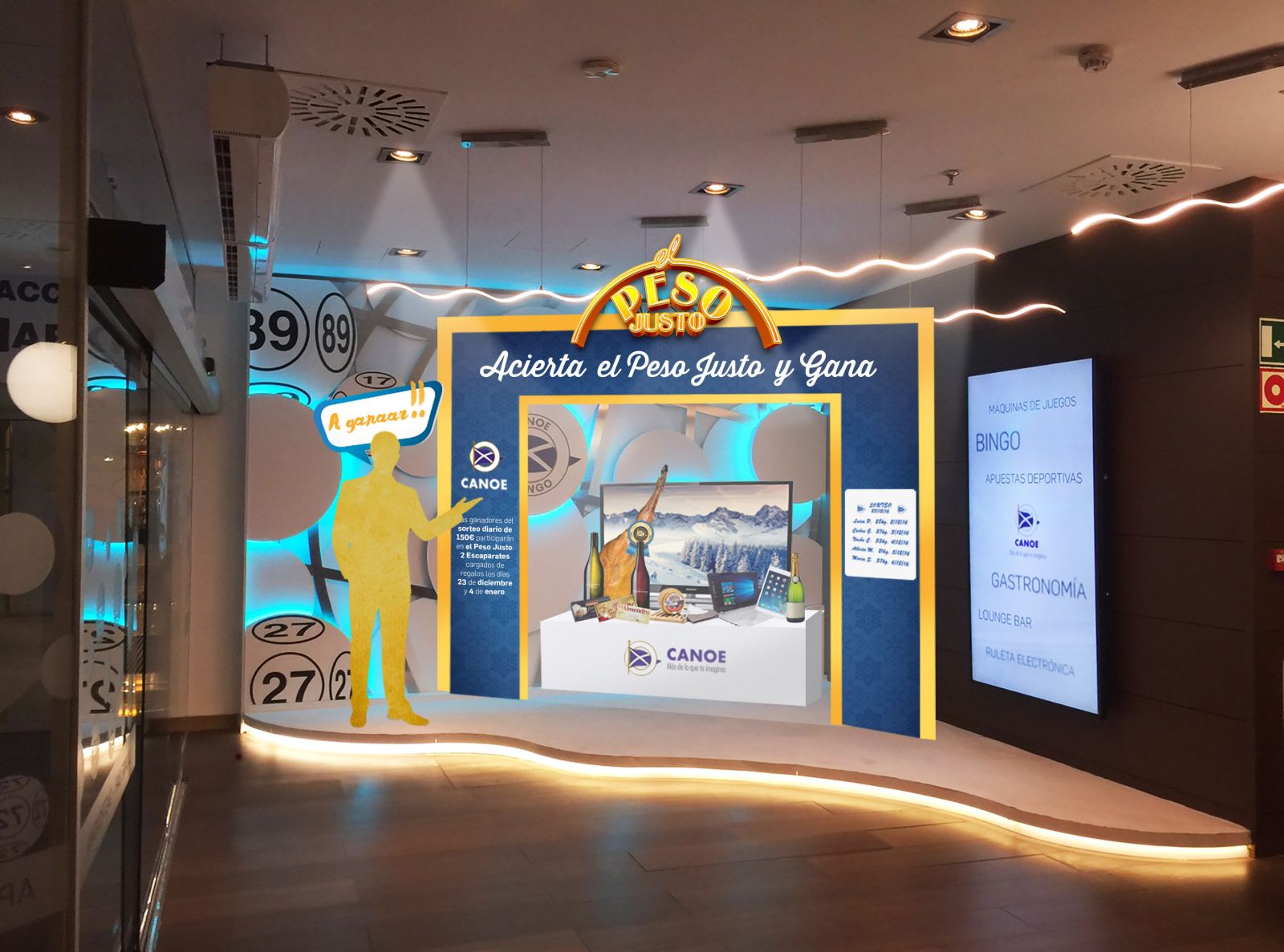 CANOE retoma esta fórmula y crea “El peso justo”. Se trata de un concurso en el que los clientes deberán averiguar, sin pasarse, el peso de un gran lote de Navidad cargado de regalos para estas fechas y productos típicos navideños.