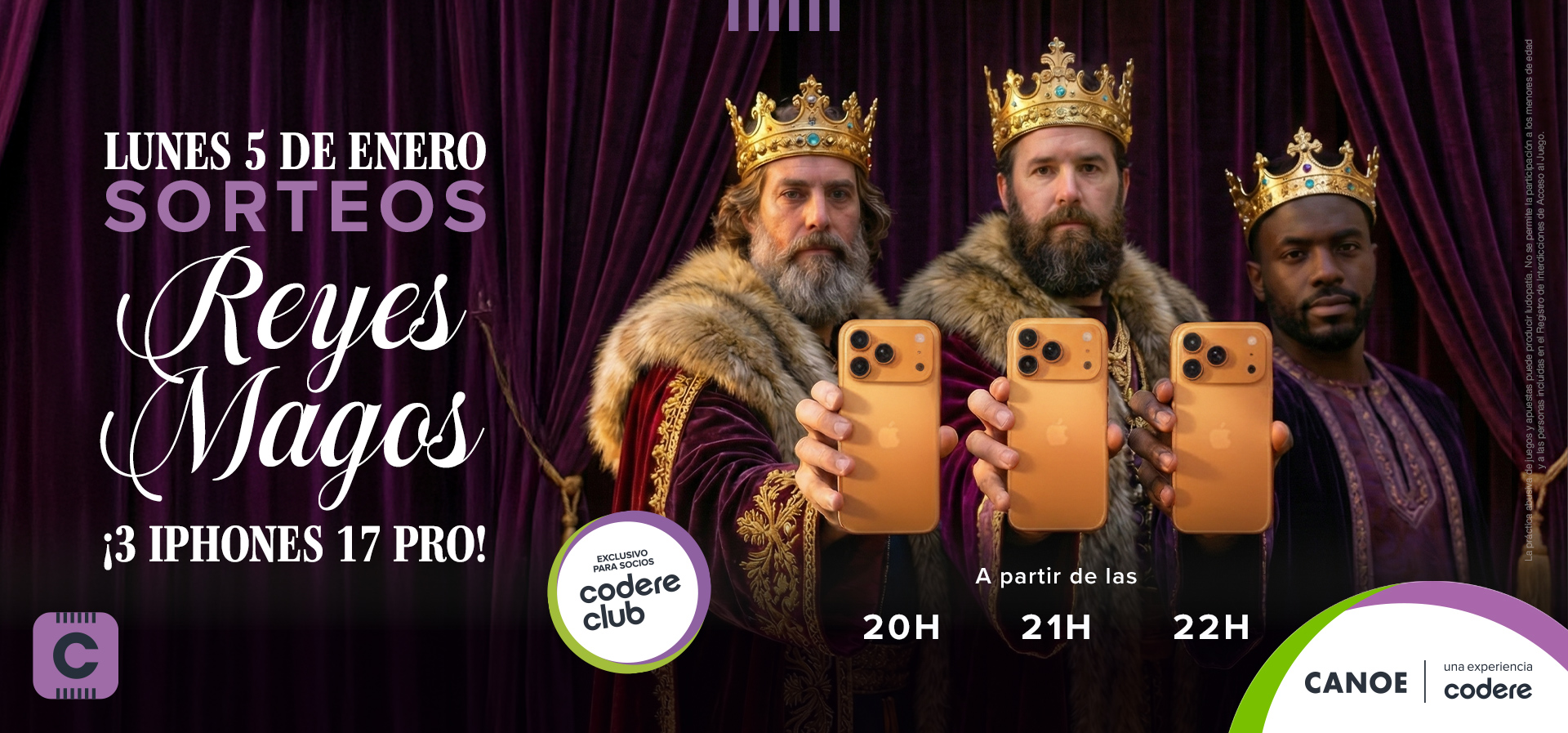 Como colofón a las celebraciones, Bingo Canoe, sala referente del ocio en Madrid, ha preparado una noche mágica para la víspera de Reyes. El 5 de enero, la sala sorteará tres iPhone 17 PRO, en sorteos programados a las 20h, 21h y 22h.